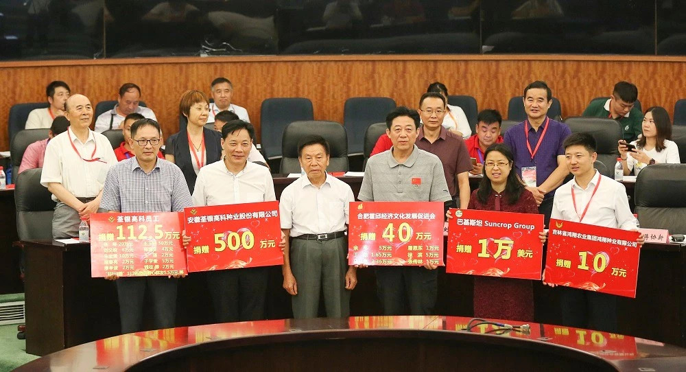 會(huì)上進(jìn)行了基金會(huì)2018年公益愛(ài)心捐贈(zèng)儀式。荃銀高科母子公司高管和員工多次參與基金會(huì)濟(jì)困助學(xué)公益慈善活動(dòng),本次捐贈(zèng)112.5萬(wàn)元;吉林鴻翔種業(yè)集團(tuán)鴻翔種業(yè)有限公司捐贈(zèng)10萬(wàn)元;巴基斯坦Suncrop Group(陽(yáng)光作物集團(tuán))捐贈(zèng)1萬(wàn)美元;合肥霍邱經(jīng)濟(jì)文化發(fā)展促進(jìn)會(huì)及會(huì)員為基金會(huì)貧困助學(xué)項(xiàng)目捐贈(zèng)40萬(wàn)元;安徽荃銀高科種業(yè)股份有限公司捐贈(zèng)500萬(wàn)元。
