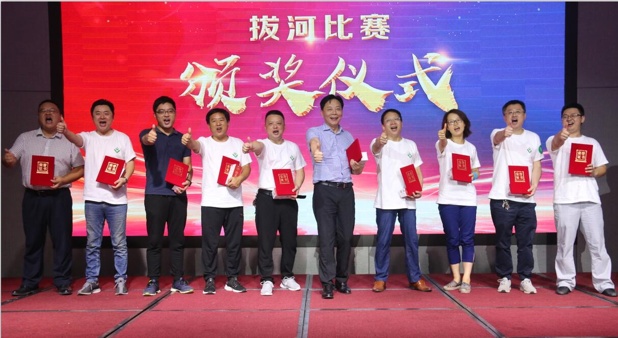 ??? 8月9日,在荃銀高科2019經(jīng)營年度分析研討會(huì)前,公司舉辦了拔河比賽,以凝聚人心,鼓舞士氣。集團(tuán)公司高管及部門負(fù)責(zé)人,20家子(分)公司、專業(yè)公司總經(jīng)理、營銷副總經(jīng)理及財(cái)務(wù)總監(jiān)60余人參加此次活動(dòng)。