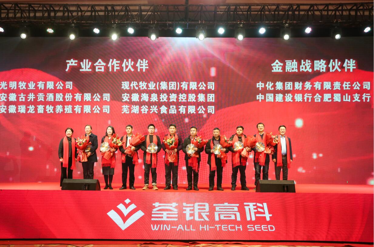 ? ? 創(chuàng)新合作,共贏發(fā)展。會(huì)上進(jìn)行了荃銀高科產(chǎn)業(yè)合作伙伴、金融戰(zhàn)略伙伴頒獎(jiǎng)儀式。近年來(lái),荃銀高科積極開(kāi)展農(nóng)業(yè)生產(chǎn)社會(huì)化服務(wù)探索,不斷加強(qiáng)與產(chǎn)業(yè)伙伴、金融公司合作,構(gòu)建“品種+品牌+資本”戰(zhàn)略發(fā)展之路,打造產(chǎn)業(yè)鏈,形成閉環(huán),創(chuàng)新發(fā)展模式,為廣大農(nóng)戶提供從種到收一條龍服務(wù),推進(jìn)一二三產(chǎn)業(yè)融合,為現(xiàn)代農(nóng)業(yè)提供整體解決方案。