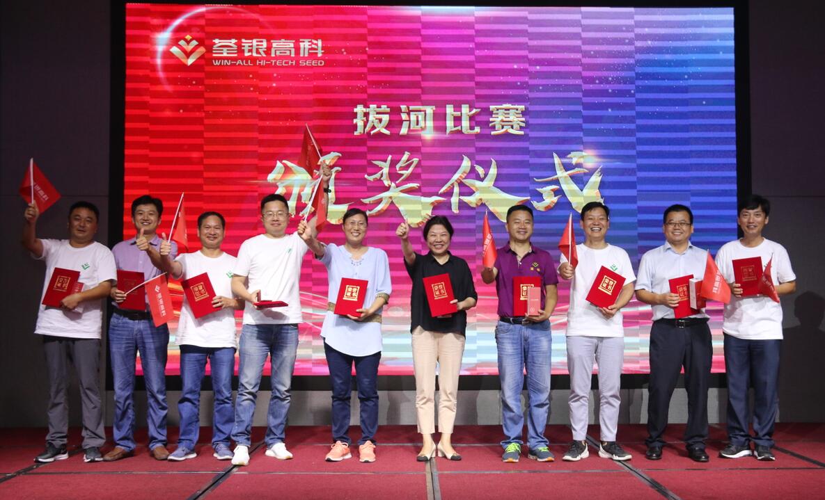 ??? 8月9日,在荃銀高科2019經(jīng)營年度分析研討會前,公司舉辦了拔河比賽,以凝聚人心,鼓舞士氣。集團公司高管及部門負責人,20家子(分)公司、專業(yè)公司總經(jīng)理、營銷副總經(jīng)理及財務(wù)總監(jiān)60余人參加此次活動。