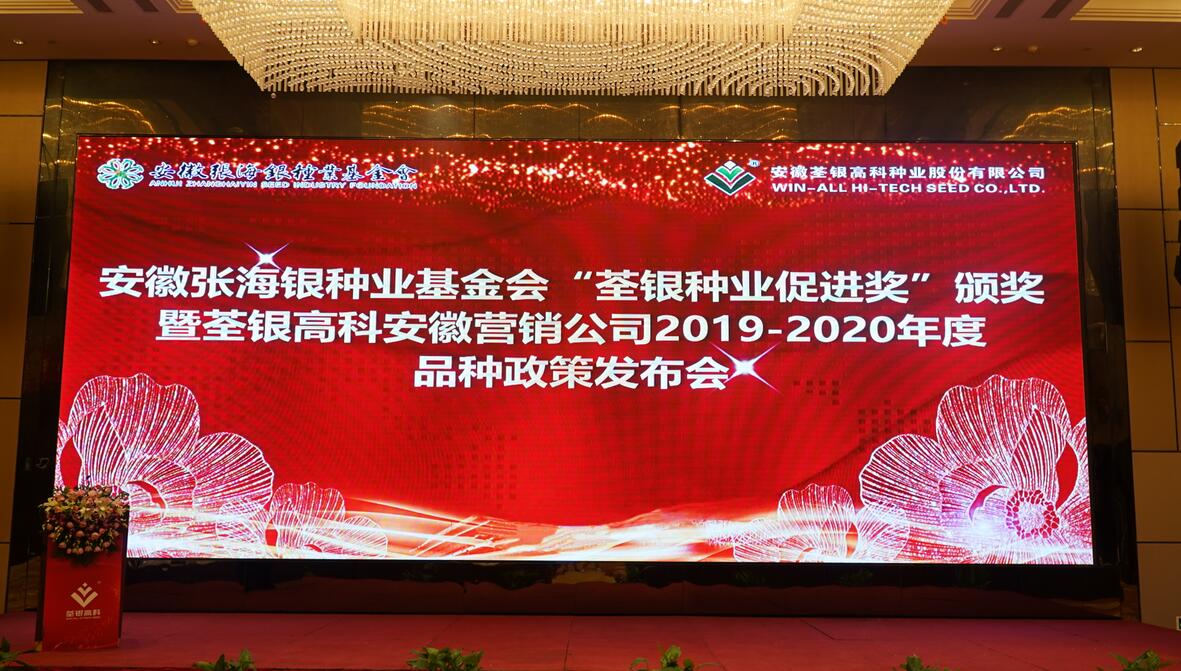 ??? 深耕種業(yè),不忘初心。8月19-20日,安徽張海銀種業(yè)基金會(huì)2019年“荃銀種業(yè)促進(jìn)獎(jiǎng)”頒獎(jiǎng)大會(huì)暨荃銀高科安徽營銷公司品種政策發(fā)布會(huì)在安徽蕪湖隆重召開。安徽省種子管理總站副站長劉根、中國貿(mào)促會(huì)蕪湖市支會(huì)會(huì)長常拯、蕪湖市種子管理站副站長陳煒平、安徽荃銀高科種業(yè)股份有限公司副董事長兼總經(jīng)理張琴、常務(wù)副總經(jīng)理兼營銷總監(jiān)王玉林、安徽張海銀種業(yè)基金會(huì)秘書長張彤、建設(shè)銀行、益海嘉里等單位相關(guān)領(lǐng)導(dǎo)及安徽、江蘇、河南等省近200位種業(yè)精英們參會(huì)。