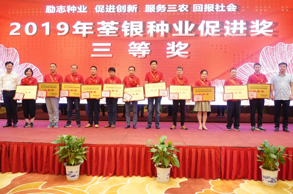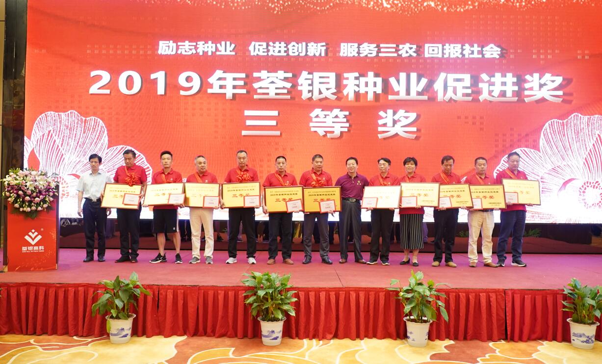 ??? 守初心擔(dān)使命,荃銀人深知企業(yè)的發(fā)展離不開社會(huì)的支持。會(huì)上,安徽張海銀種業(yè)基金會(huì)監(jiān)事鄭滿生先生宣讀“荃銀種業(yè)促進(jìn)獎(jiǎng)”頒獎(jiǎng)文件,大會(huì)向35名在優(yōu)質(zhì)水稻推廣和良種服務(wù)等方面取得優(yōu)異成績(jī)的代表頒發(fā)了“荃銀種業(yè)促進(jìn)獎(jiǎng)”專項(xiàng)獎(jiǎng)。